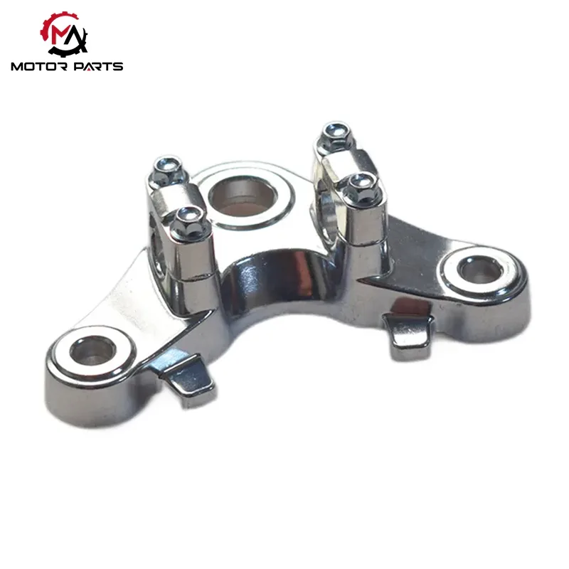 Мак Традинг је специјализован за истраживање и развој и набавку структурних компоненти мотоцикала. Горња спојна плоча нашег Хонда ЦГ125 мотоцикла, језгра носивости и управљачке компоненте која повезује ЦГ125 виљушку, амортизере и оквир, прошла је инжењерску оптимизацију у четири димензије: структурална механика, обрада материјала, компатибилност уградње и дугорочна издржљивост. Ова горња спојна плоча има индустријски стандардни облик бумеранга и троугласти распоред рупа у три тачке, комбинован са зонираним дизајном дебљине, интегрисаним ребрима за ојачање и шупљином у облику лука која смањује тежину. Постиже и високу чврстоћу и лагану конструкцију. Вишеструки третмани против корозије, укључујући електрофорезу, премазивање прахом и галванизацију, осигуравају његову дугорочну прилагодљивост кишном, блатњавом и неравном окружењу.