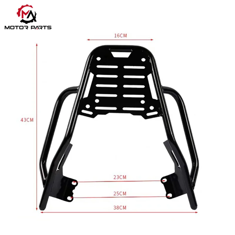 Иамаха 125 задњи носач пртљага је направљен од челика високе чврстоће, пружајући чврсту и еластичну структуру дизајнирану за дуготрајну употребу. Дизајниран је да поуздано носи различите врсте пртљага, пружајући чврсто и поуздано решење за свакодневна путовања. Било да се ради о кратким путовањима или дужим путовањима, овај носач обезбеђује сигуран транспорт ваших ствари без угрожавања издржљивости или стила.
